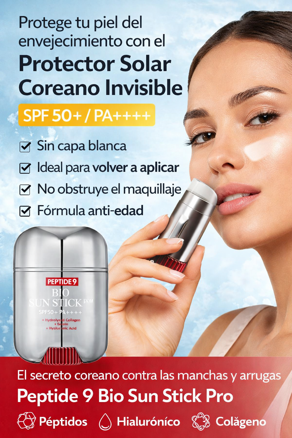 Descubre la nueva generación de protección solar con Peptide 9 Bio Sun Stick Pro SPF50+ PA++++, el protector solar coreano en barra que combina tecnología dermatológica avanzada + activos antiedad en un formato práctico, elegante y portátil.